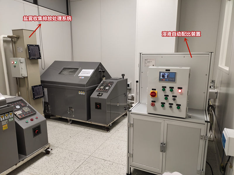 在实验室中,合理配置盐雾试验箱,溶液配比装置,盐雾收集..