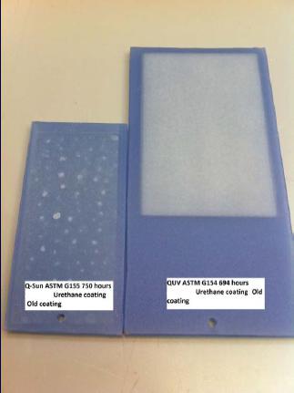 在QUV测试中,涂层出现细微变化,但是在Q-SUN测试中找不到这种变化